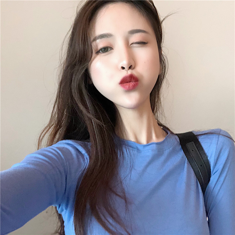 / 秋季新款時尚韓國圓領顯瘦純色堆堆袖修身打底衫百搭t恤女上衣潮