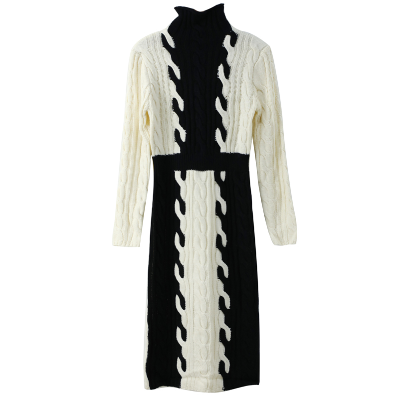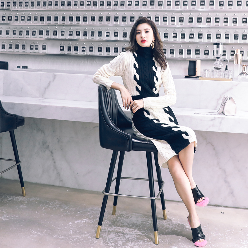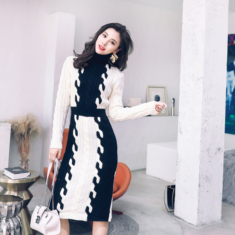 chic網紅針織連衣裙秋冬季女裝2018新款高領修身顯瘦毛衣打底長裙