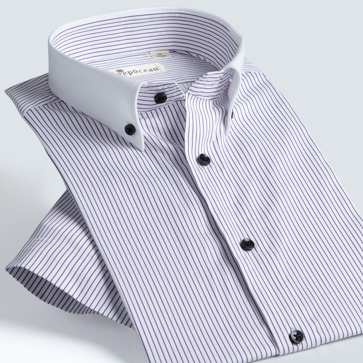 / 深海夏季中年男短袖襯衫彈力棉修身免燙商務條紋休閑半袖男式襯衫