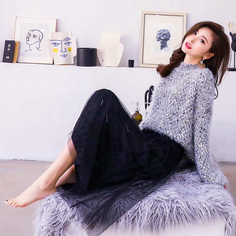 / 女神范2018秋冬季新款韓版網紅俏皮甜美港味毛衣網紗裙子兩件套裝
