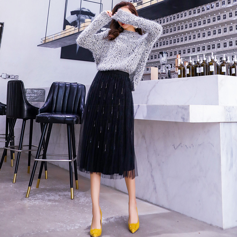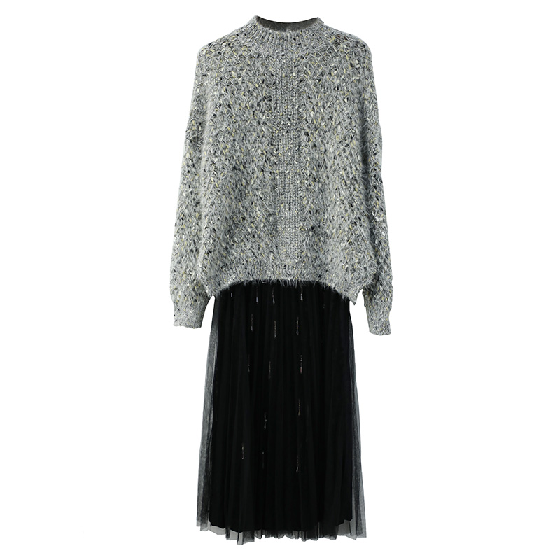 女神范2018秋冬季新款韓版網紅俏皮甜美港味毛衣網紗裙子兩件套裝