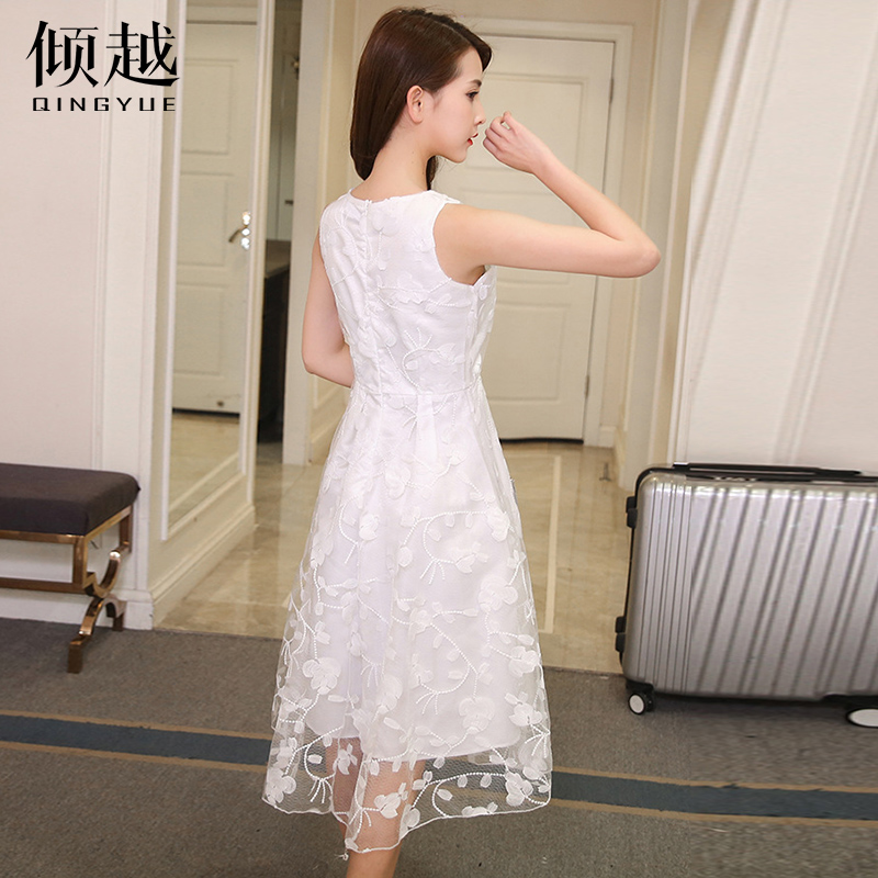 傾越2017新款蕾絲連衣裙夏季長款修身顯瘦背心裙甜美小清新沙灘裙
