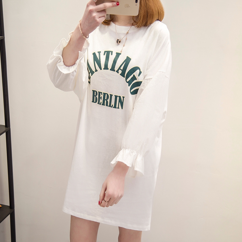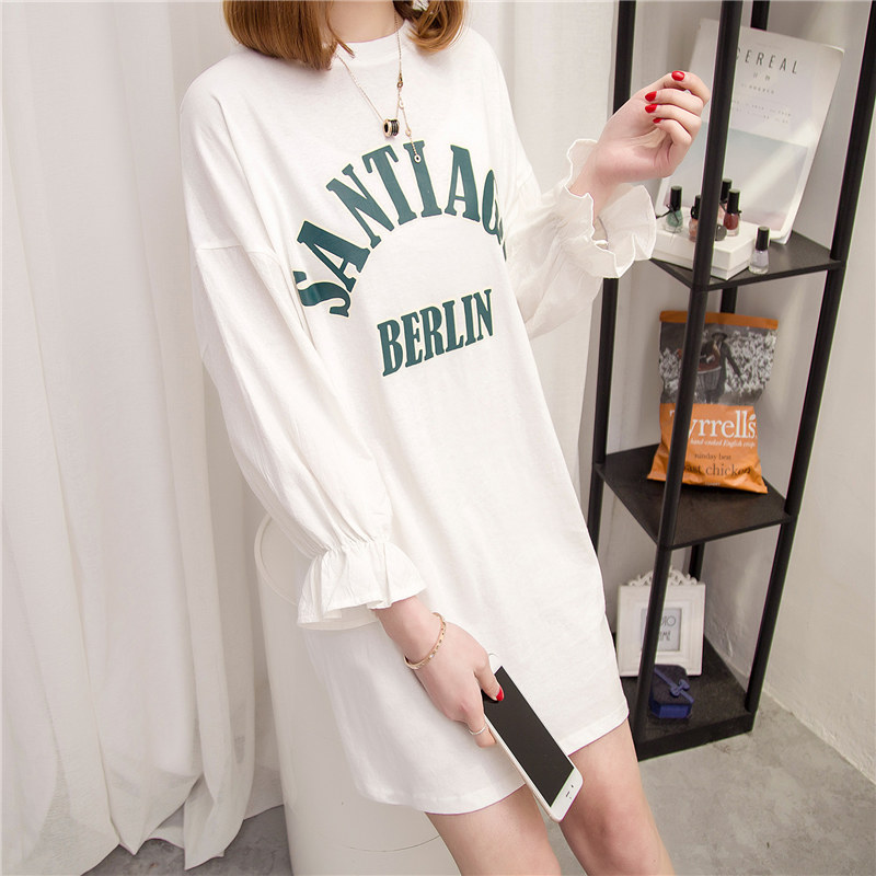 短袖t恤女寬松打底衫女韓版中長款字母體恤女裝春季時尚新款