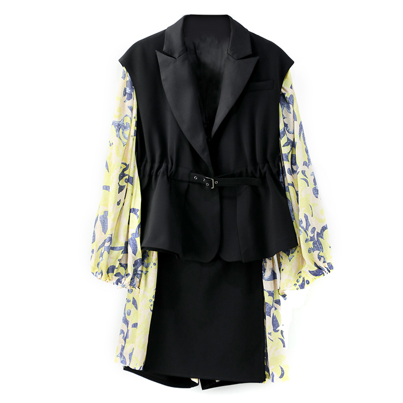 / 歐洲站2018秋季新款時尚拼接套裝女休閑長袖寬松上衣半身裙兩件潮