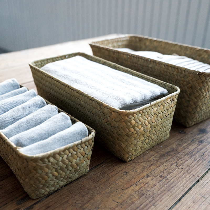 純手工海草編織收納籃雜物整理盒置物籃長條形收納筐