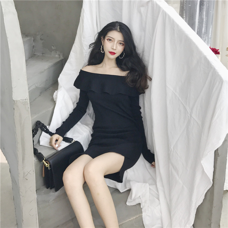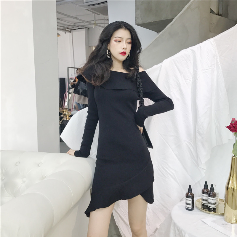 / 晚晚風2018新款秋裝性感顯瘦不規則邊短裙chic修身長袖針織連衣裙