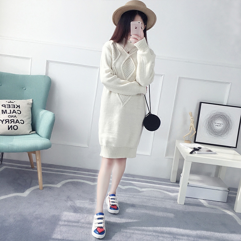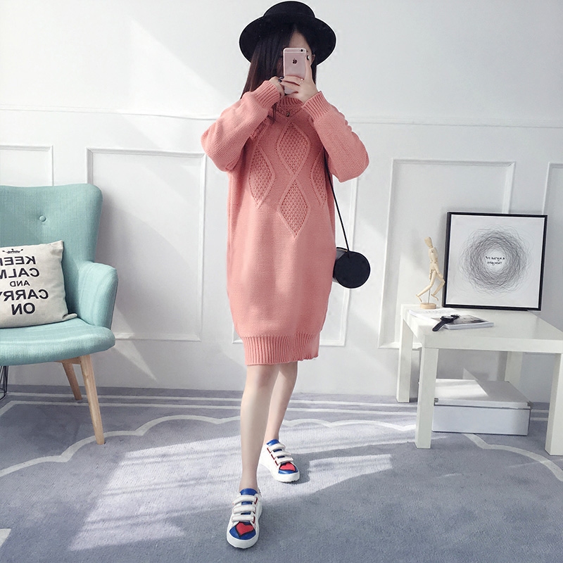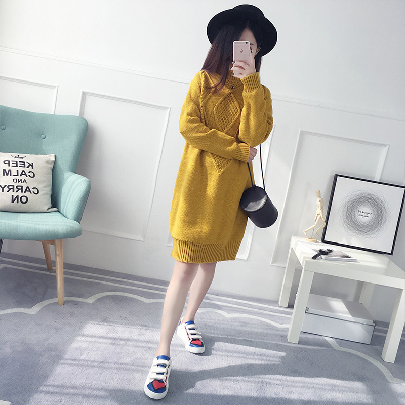 / 韓版半高領秋冬套頭毛衣女針織衫長袖寬松中長款粗毛線衣服新款潮