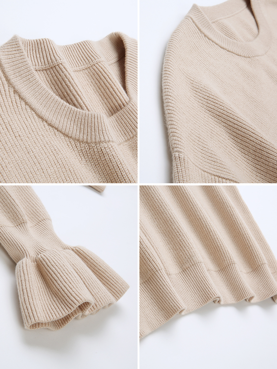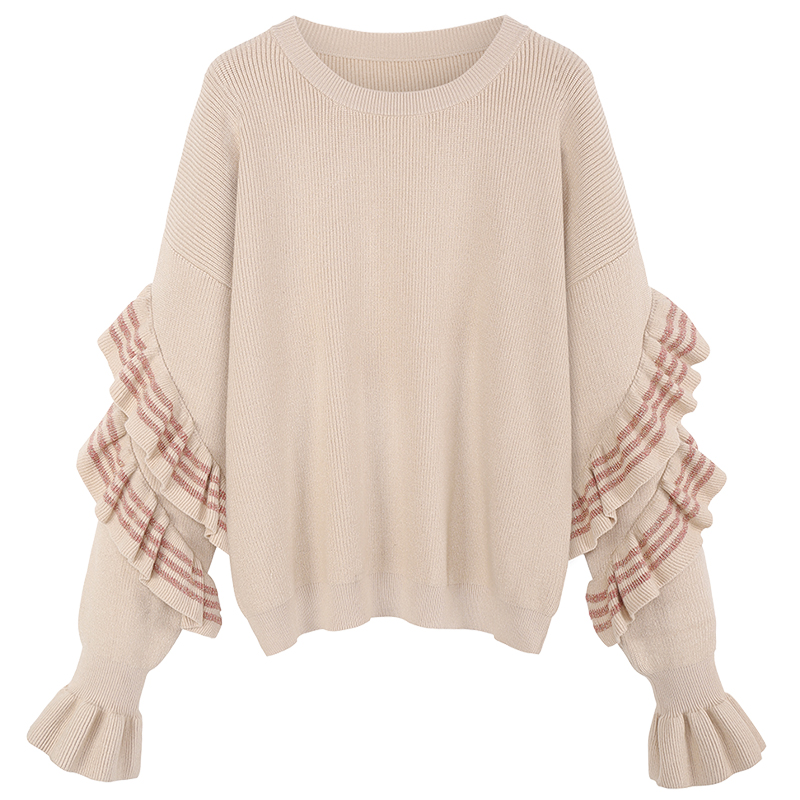 MG小象木耳邊針織衫女套頭秋冬新款休閑時尚寬松毛衣復古chic上衣
