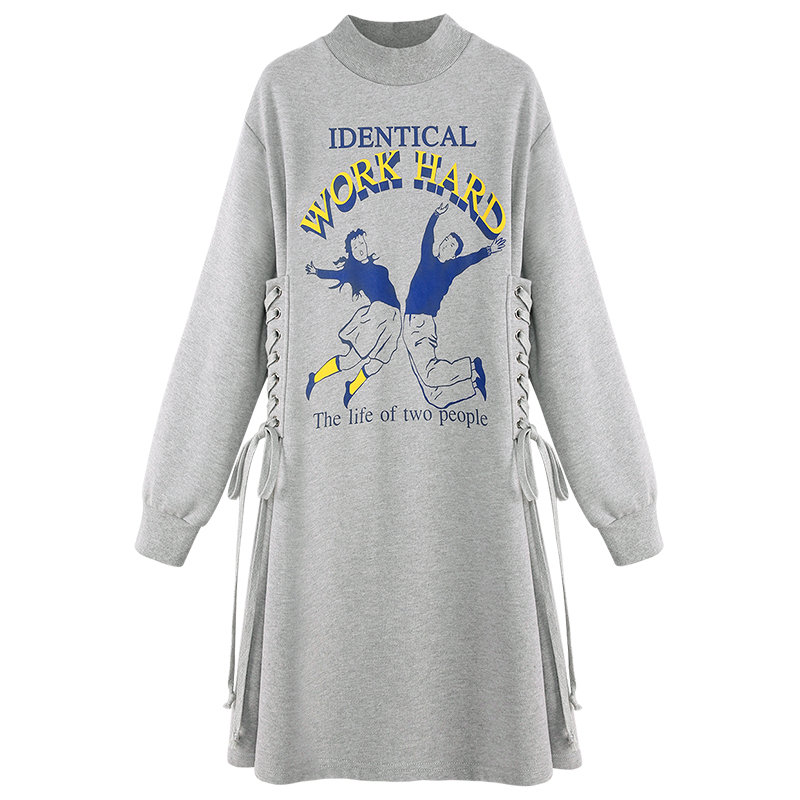 MG小象中長款氣質連衣裙女冬寬松收腰顯瘦衛衣裙2018新款學生裙子