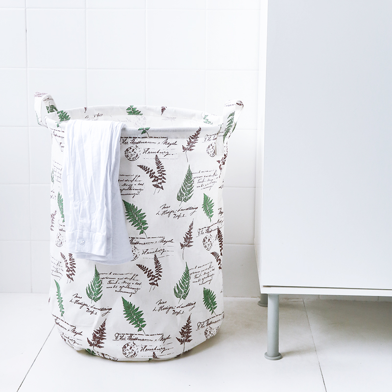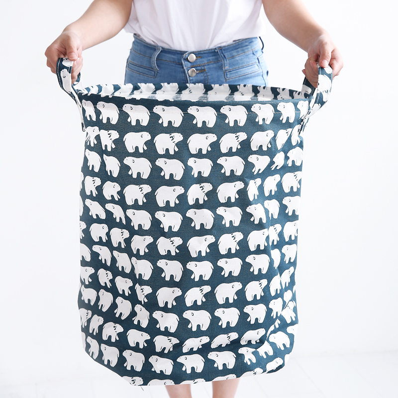 日韓收納桶棉麻防水束口臟衣籃折疊收納籃衣服洗衣籃