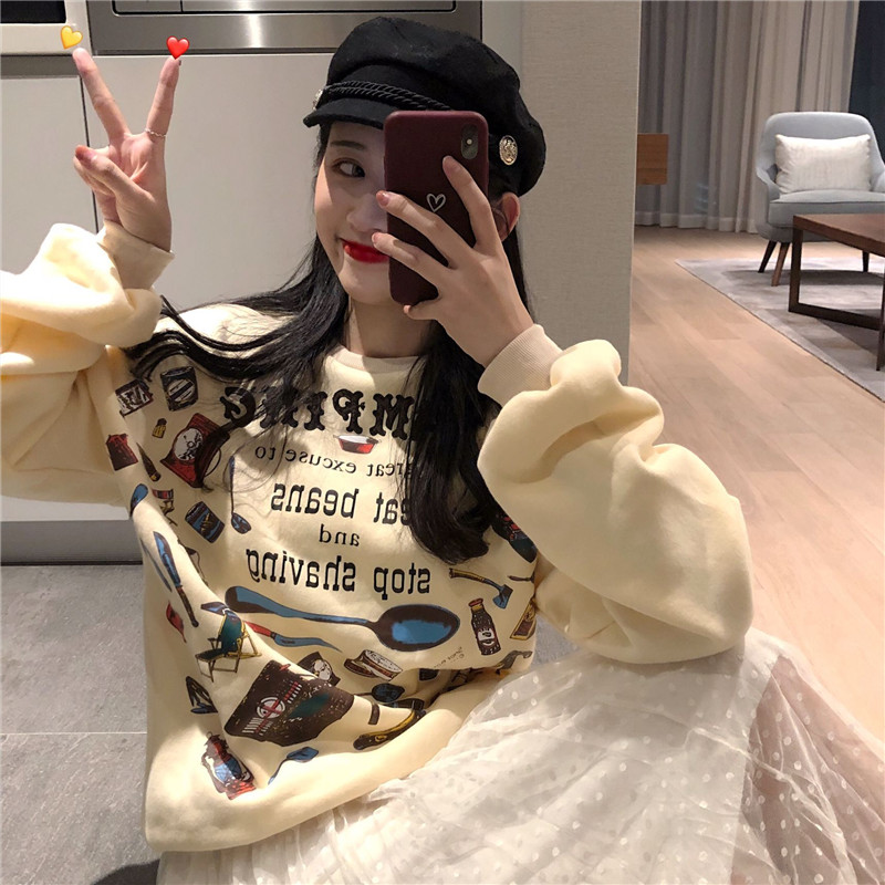 / 時尚字母印花加絨衛衣女秋冬2018新款+百搭修身中長款連衣裙套裝