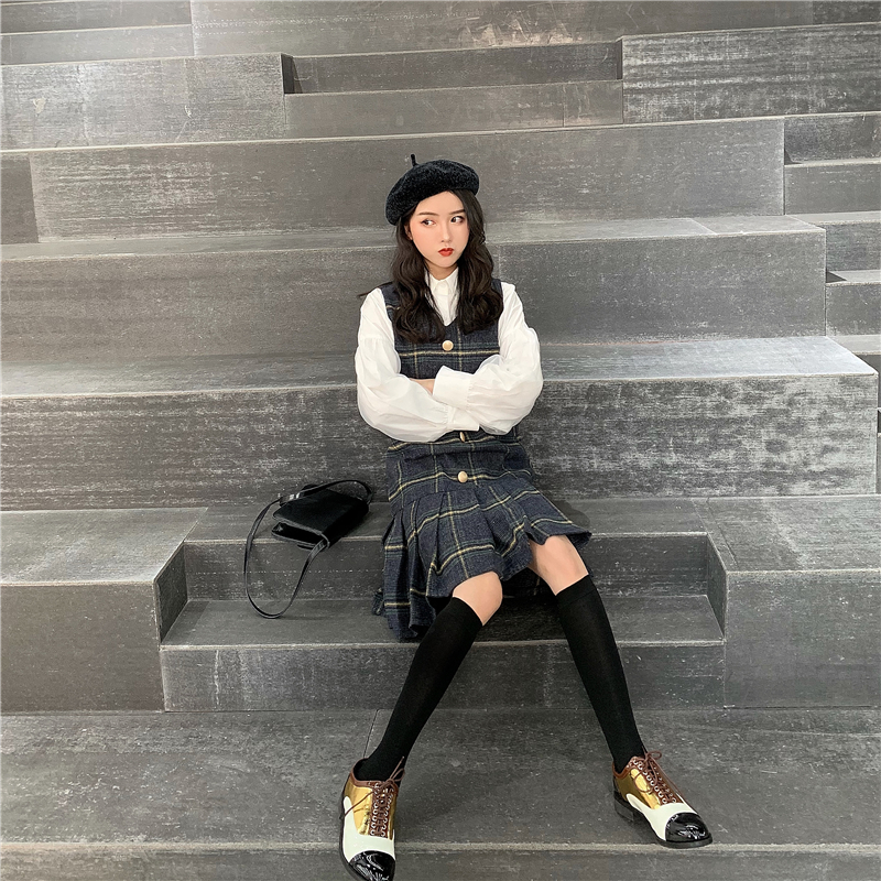格子裙|白色襯衫