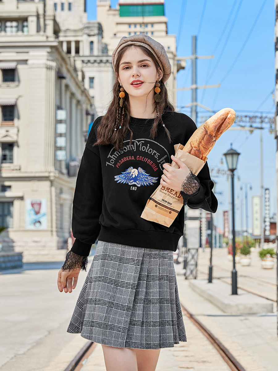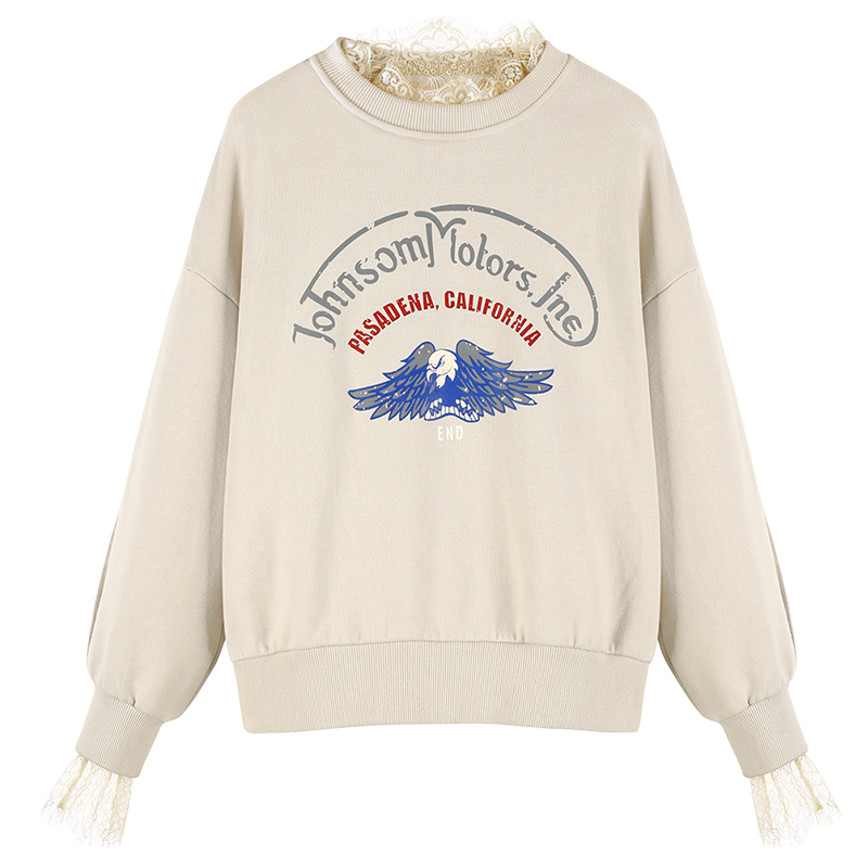 MG小象蕾絲拼接衛衣女寬松長袖秋冬2018新款學生圓領套頭chic上衣