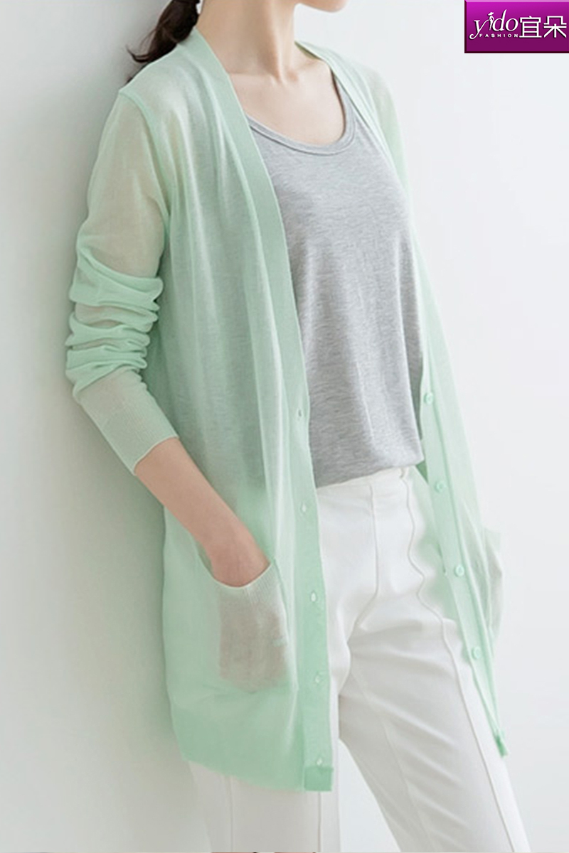 中長款針織衫女開衫春秋款寬松中長款長袖針織衫防曬衫針織外套薄
