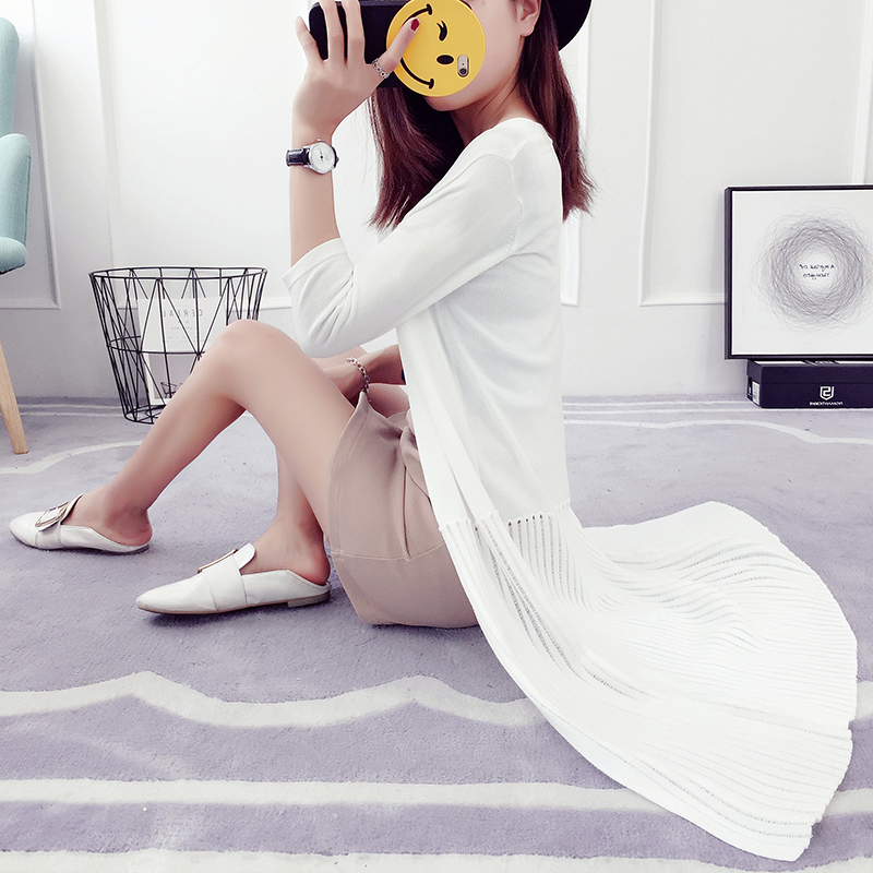 / 冰麻針織衫新款開衫女防曬衫中長款夏季薄款七分袖外套空調衫