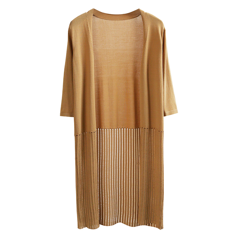 冰麻針織衫新款開衫女防曬衫中長款夏季薄款七分袖外套空調衫