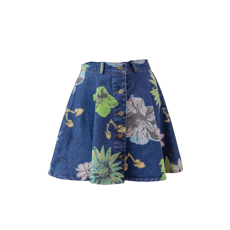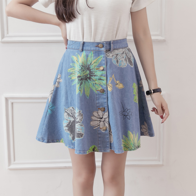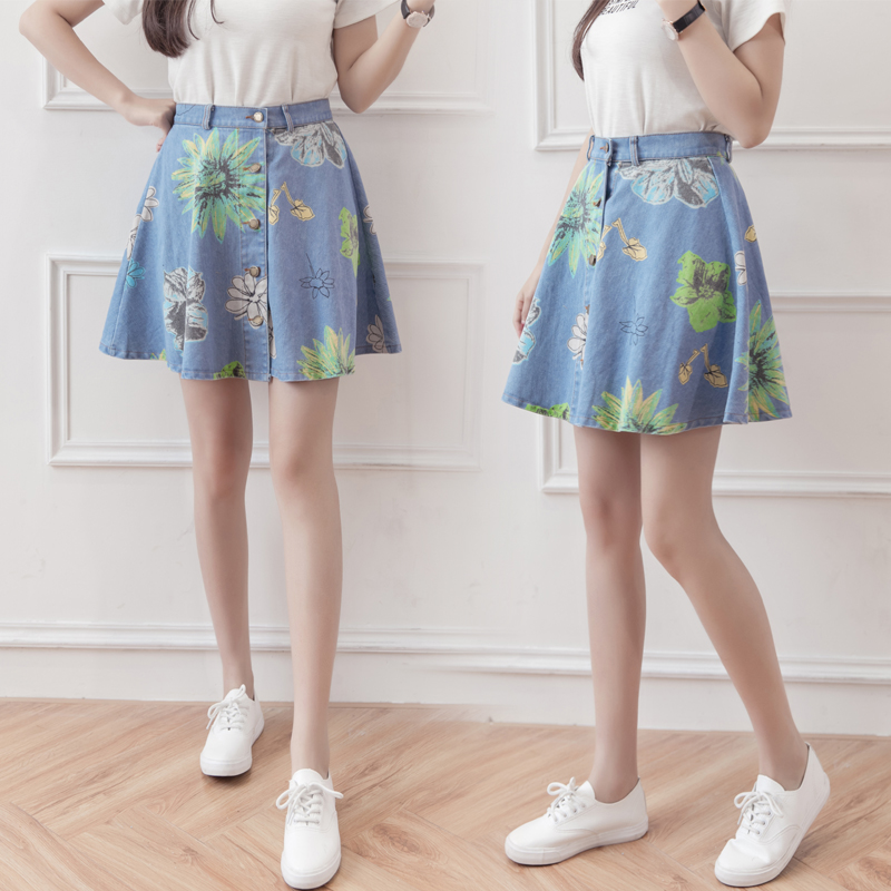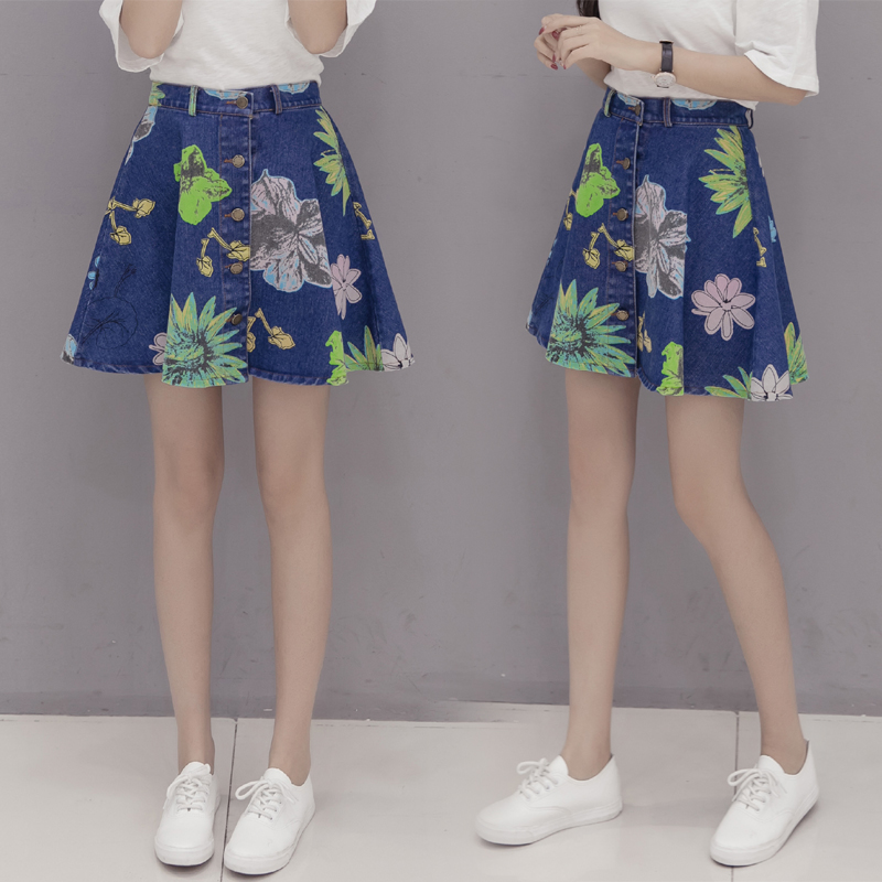 / 韓版高腰繡花牛仔裙半身裙女刺繡短裙A字裙包臀半裙花朵蓬蓬裙夏