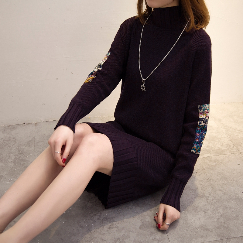 中長款套頭韓版寬松毛衣女秋冬毛線衣加厚半高領打底針織衫毛衣裙