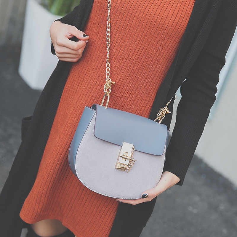 新款韓版迷你包鏈條包撞色磨砂斜挎包女小包鎖扣單肩女包潮