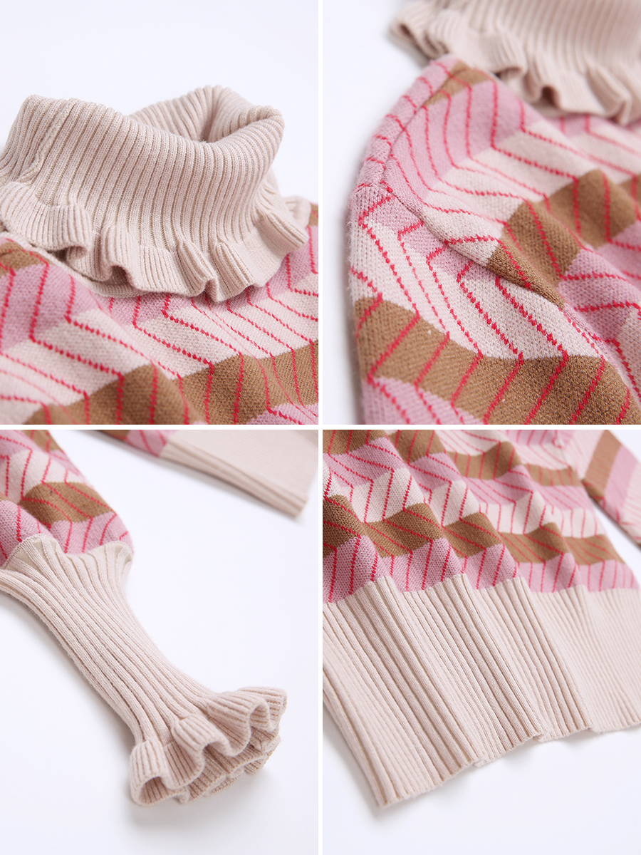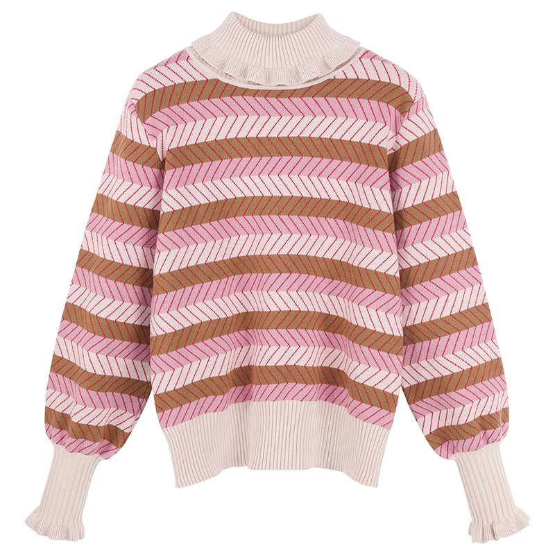 MG小象高領毛衣女套頭寬松復古條紋針織衫秋冬2018新款小清新上衣