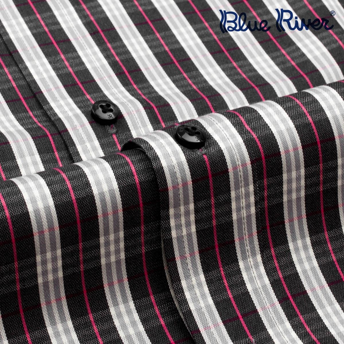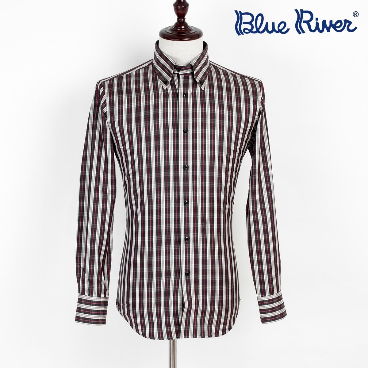 / 藍河秋季新款 深色彩色大格子商務休閑長袖襯衫高支棉男式襯衣