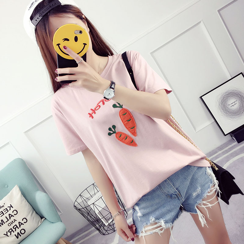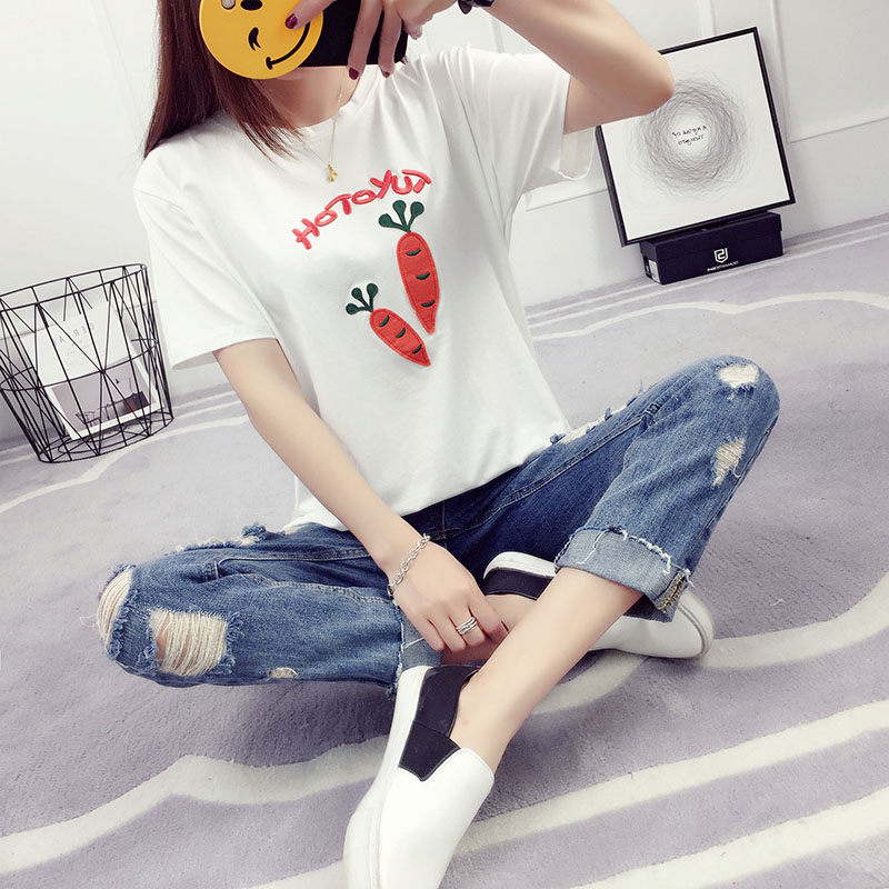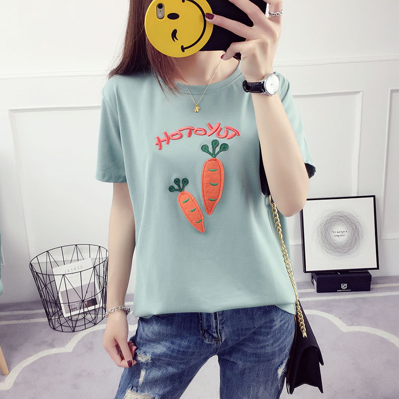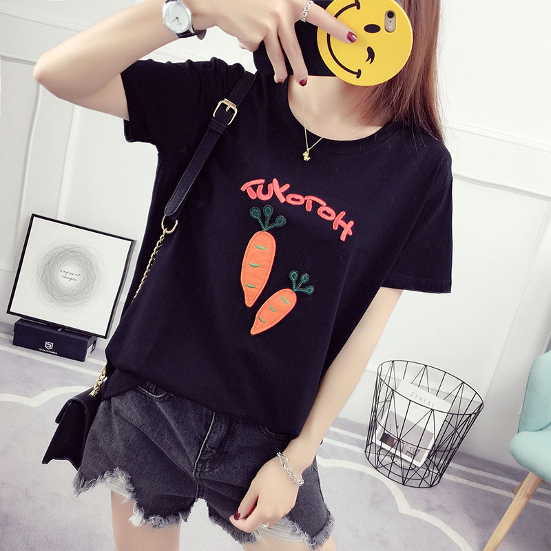 / 夏裝新款韓版潮寬松百搭學生刺繡短袖t恤女夏天衣服韓范體恤