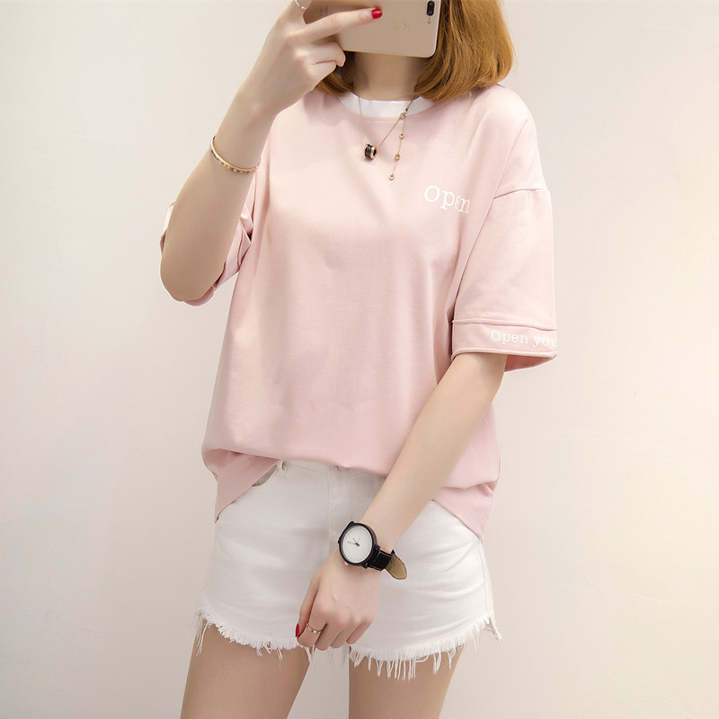/ 夏裝新款女裝白色t恤女短袖韓版字母體恤衫寬松上衣百搭衣服