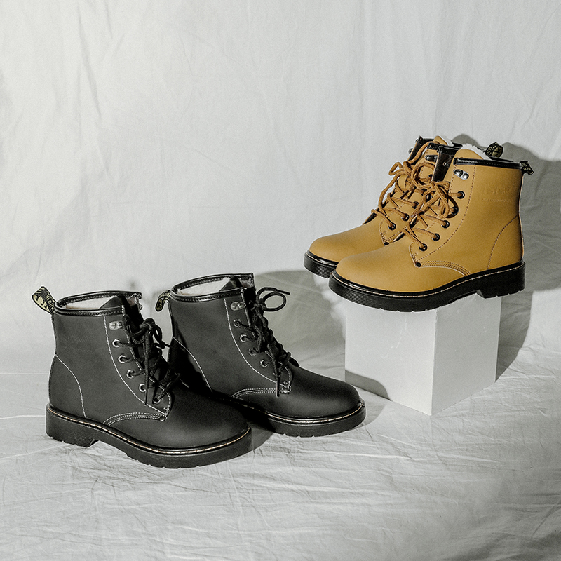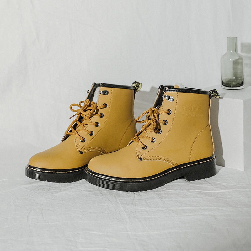 MG小象圓頭復古馬丁靴女低跟個性皮鞋2018新款冬季韓版學生短靴潮