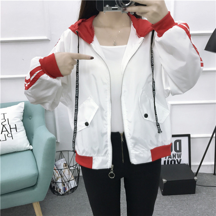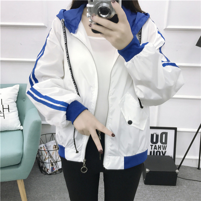 2017夏季新款拼接百搭寬松學生防曬衣bf原宿風薄款棒球服外套女潮