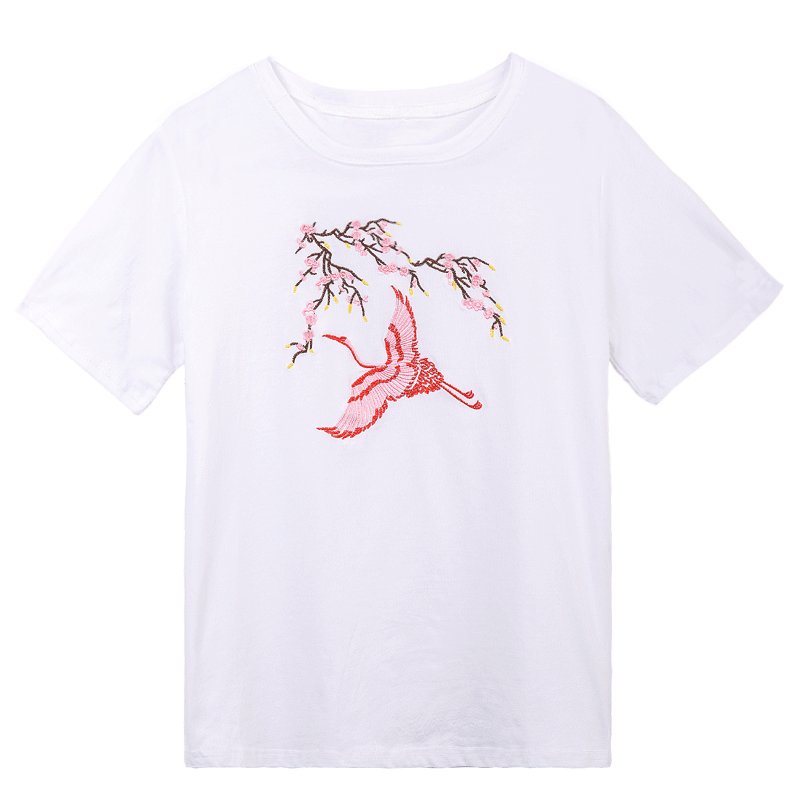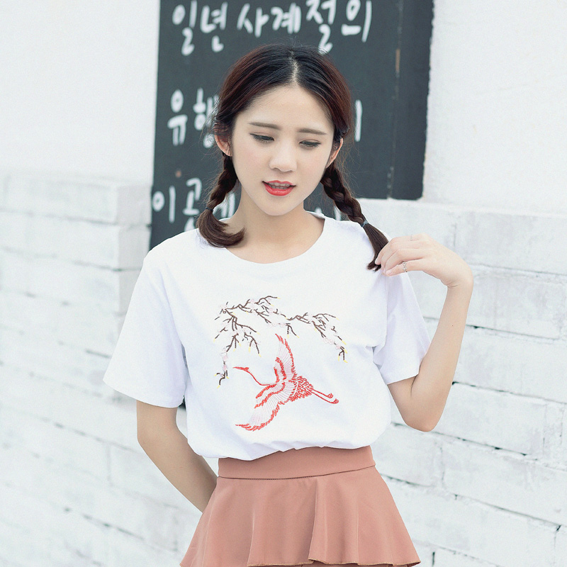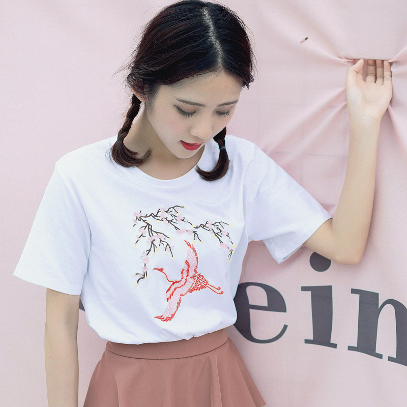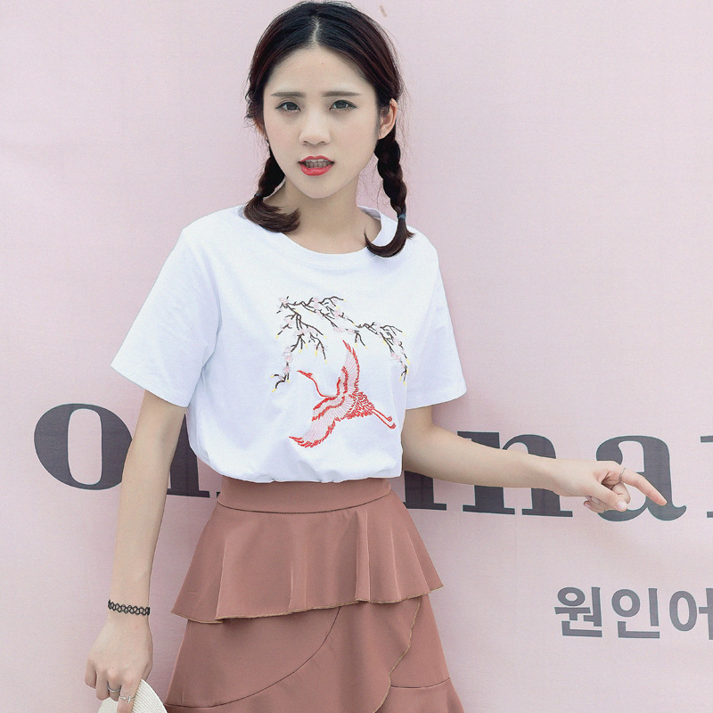 短袖t恤女韓版寬松白色玫瑰花刺繡學生體恤上衣女裝新款夏裝