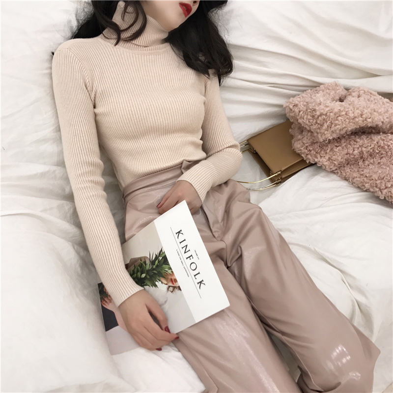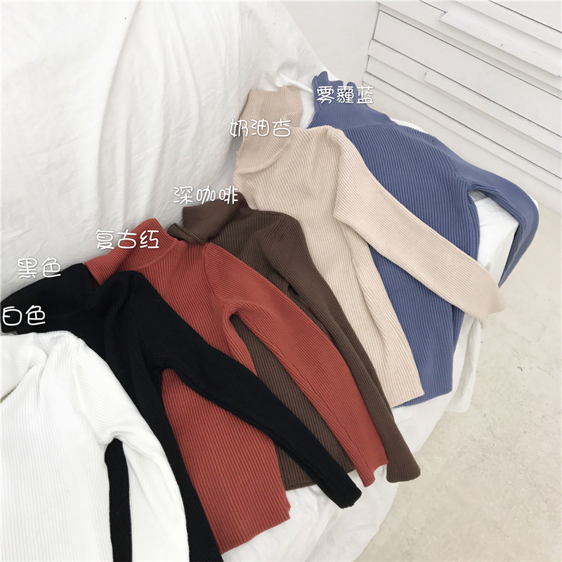 長袖2018新款秋季上衣韓版修身百搭彈力柔軟高領復古針織衫打底女