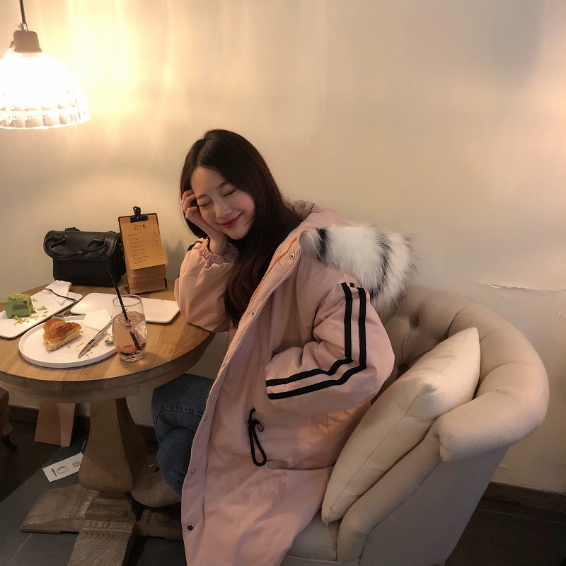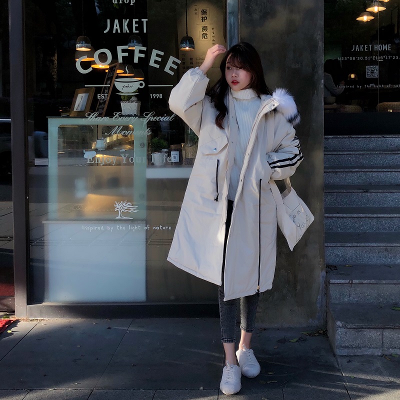 / 冬季新款韓版chic港風復古中長款毛領寬松加厚保暖面包服棉衣外套