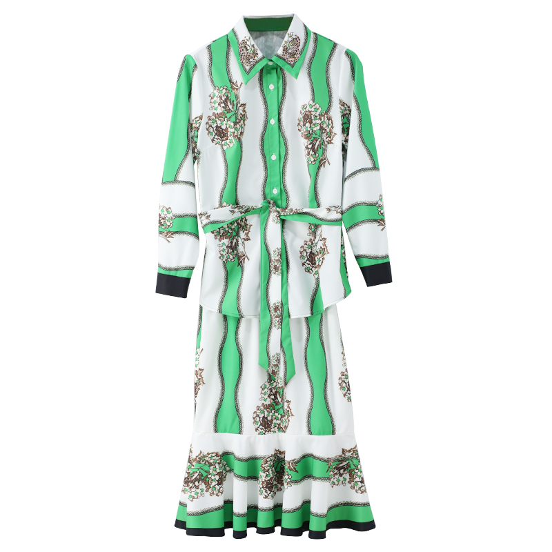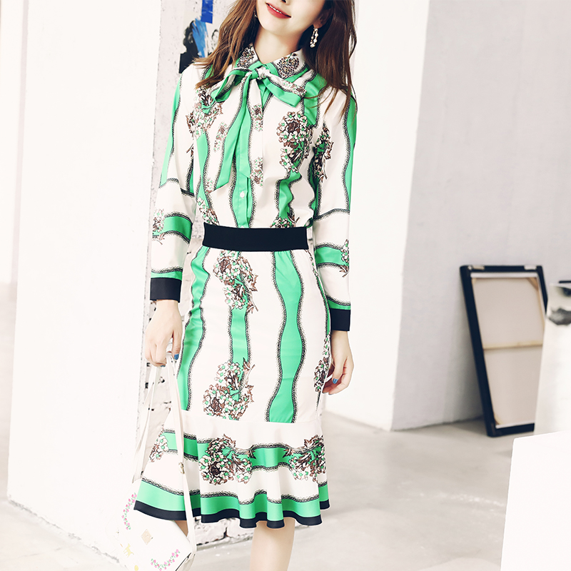 / S秀名媛OL淑女氣質時尚套裝女裝2018秋季新款襯衣魚尾半裙兩件套