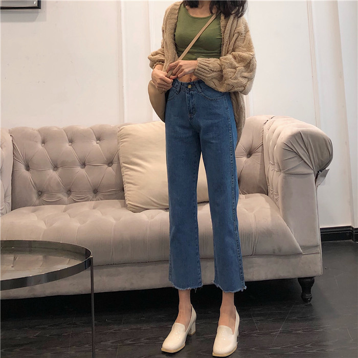 / 2018新品春秋韓版chic九分平腳復古直筒牛仔褲修身顯瘦女褲子潮