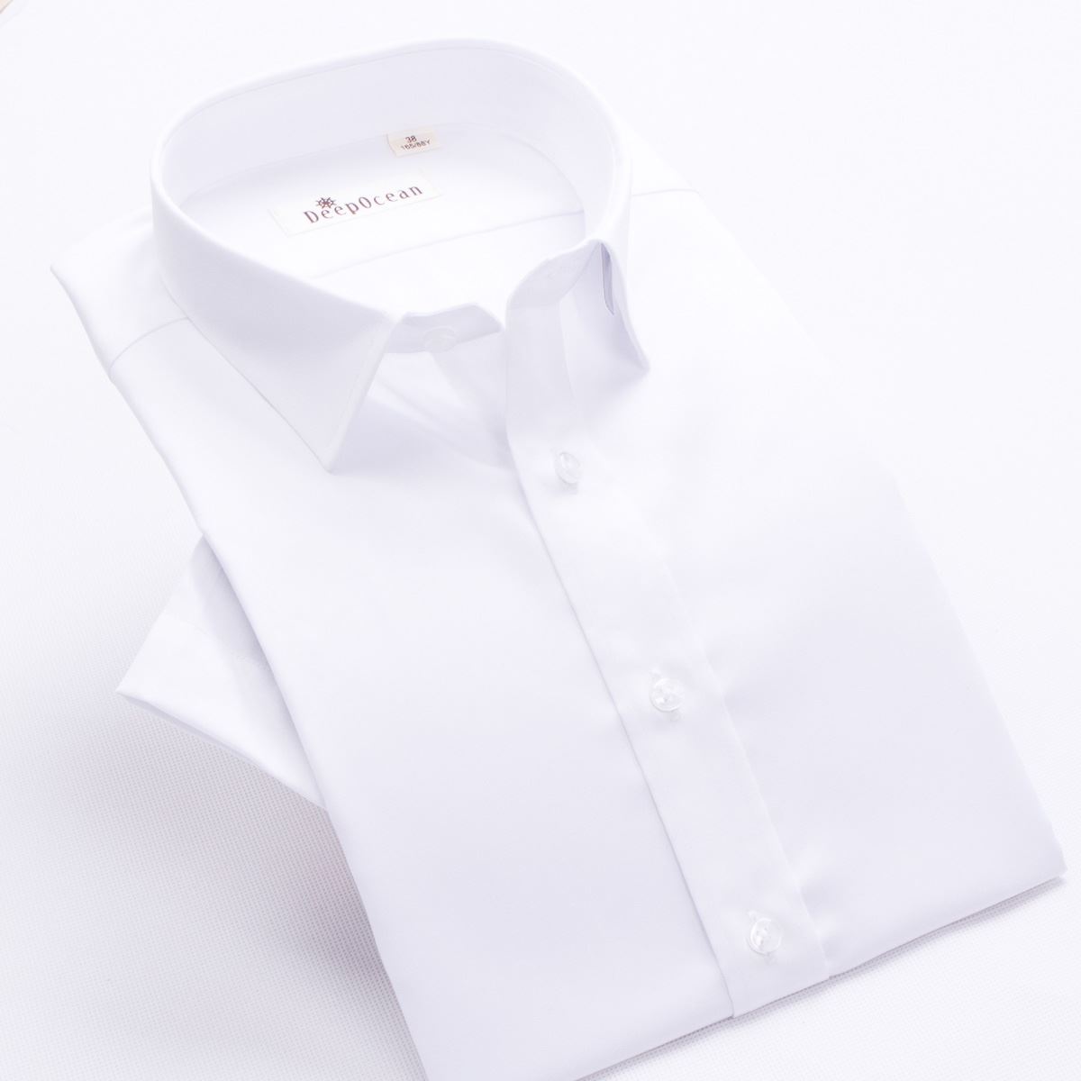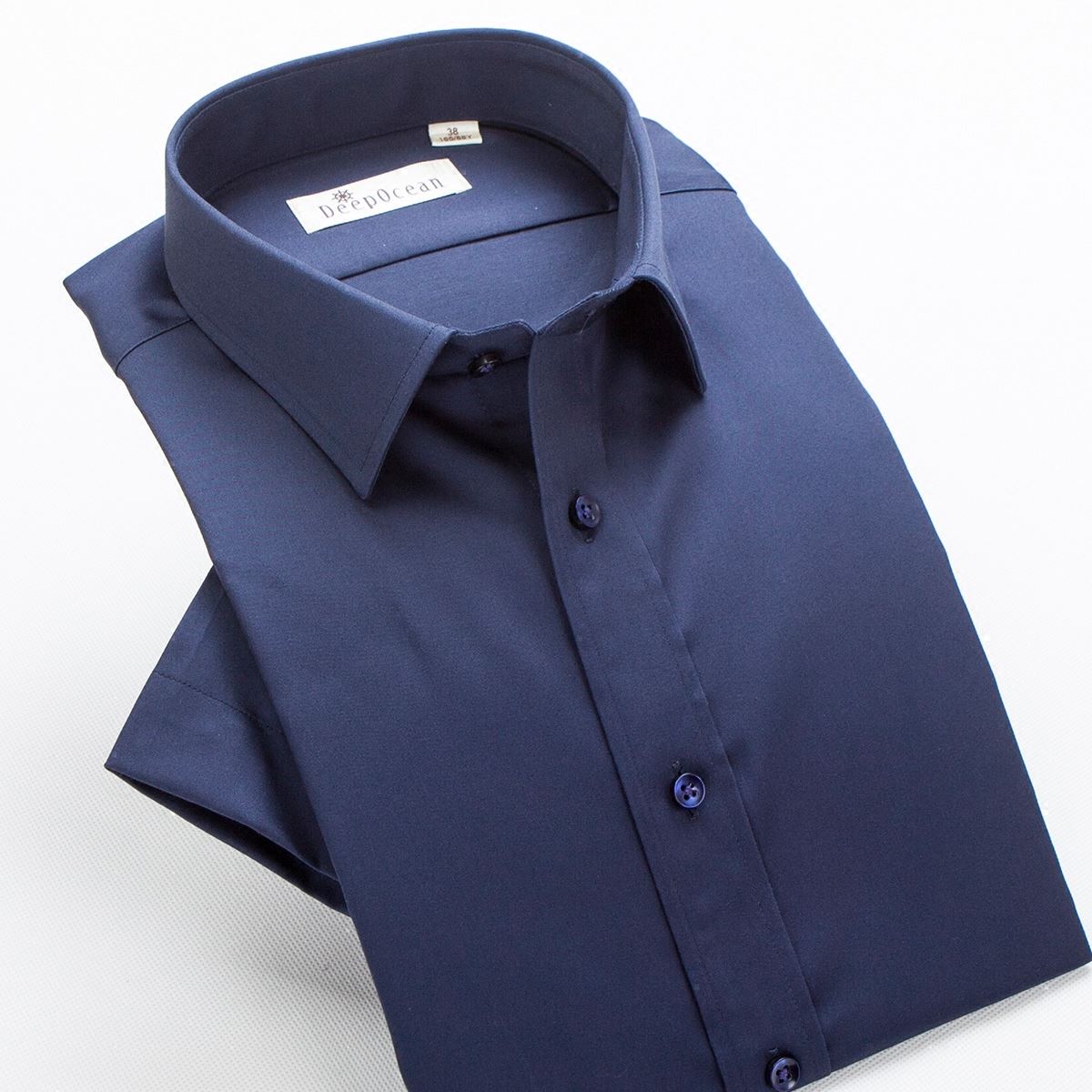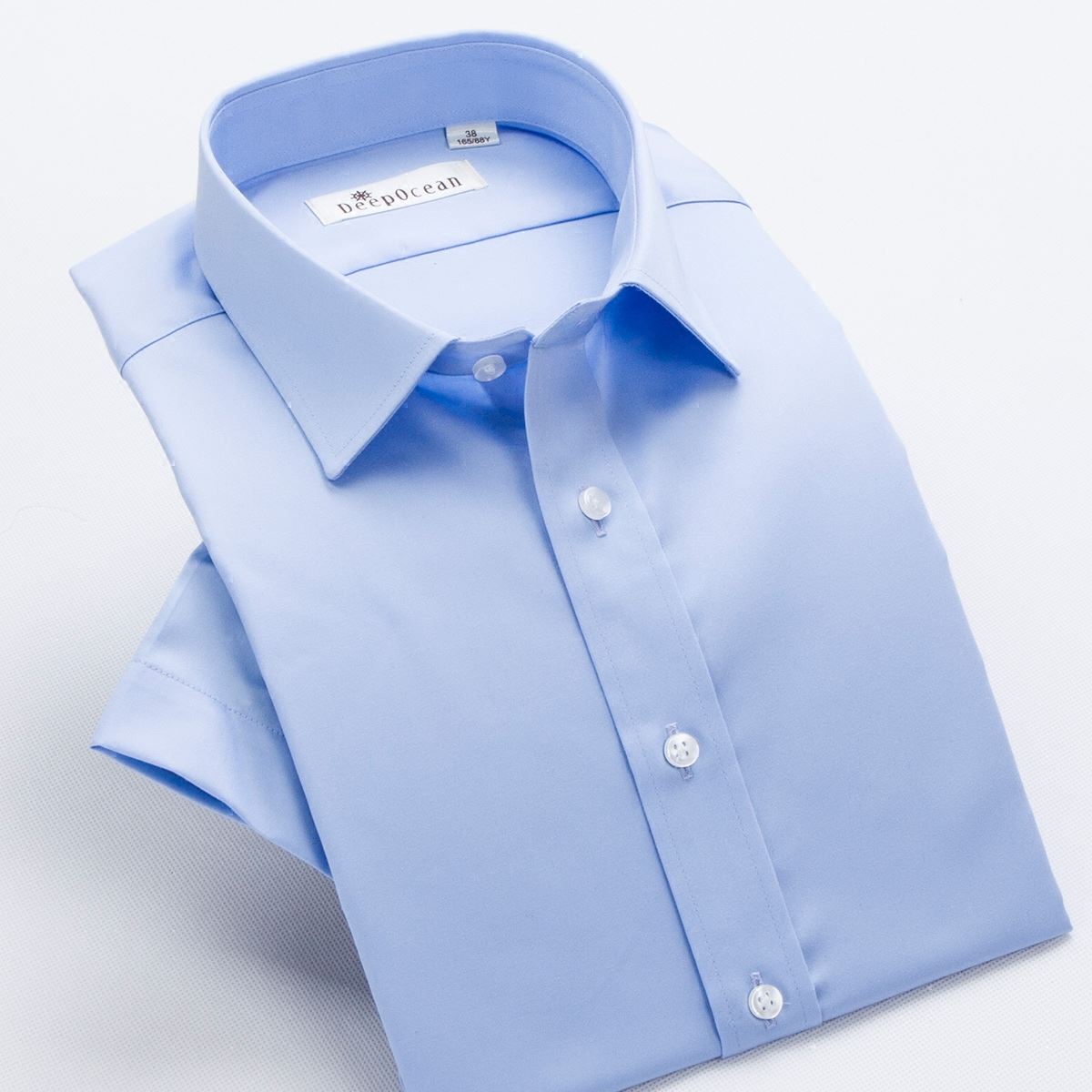/ 新品男裝制服小方領純色短袖藍襯衫白領上班正裝半袖絲光棉白襯衣