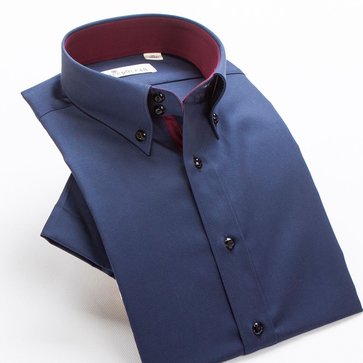 / 純藍色男式半袖襯衫商務絲光棉純棉修身型韓版男夏季短袖男裝襯衣