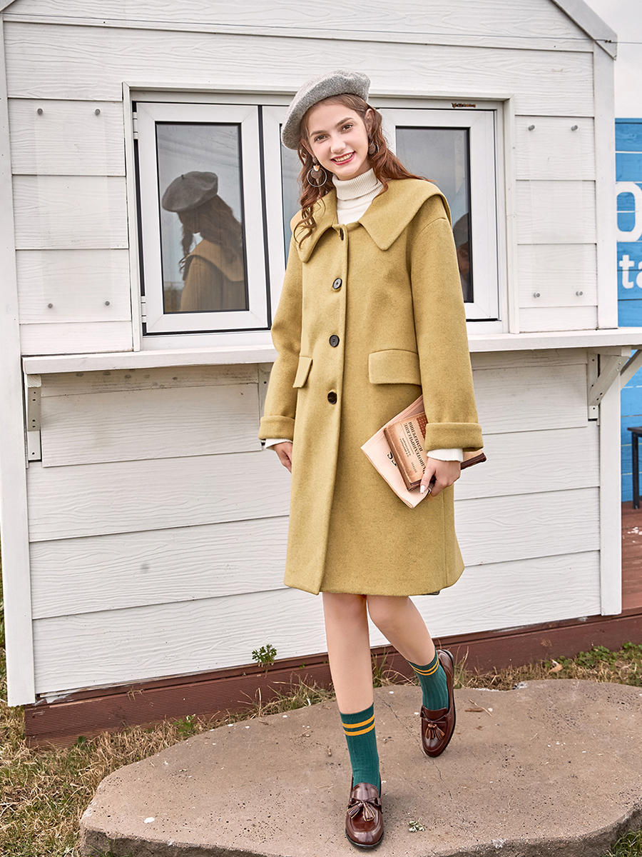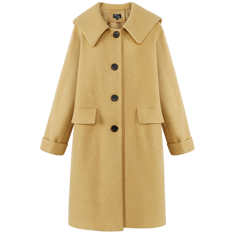 MG小象中長款過膝毛呢外套女冬季2018新款學院風翻領學生呢子大衣