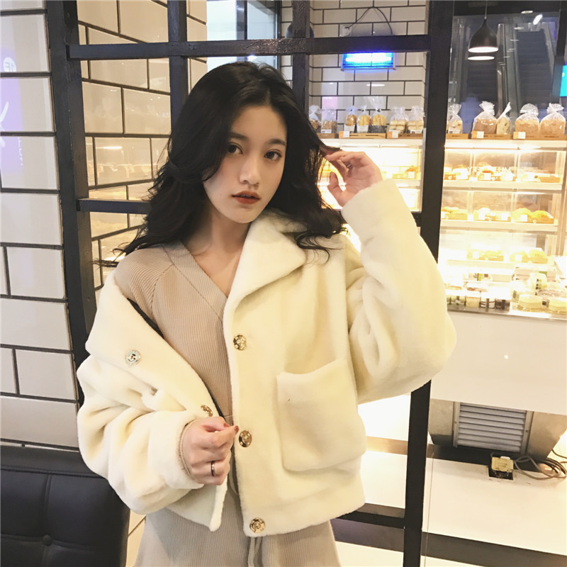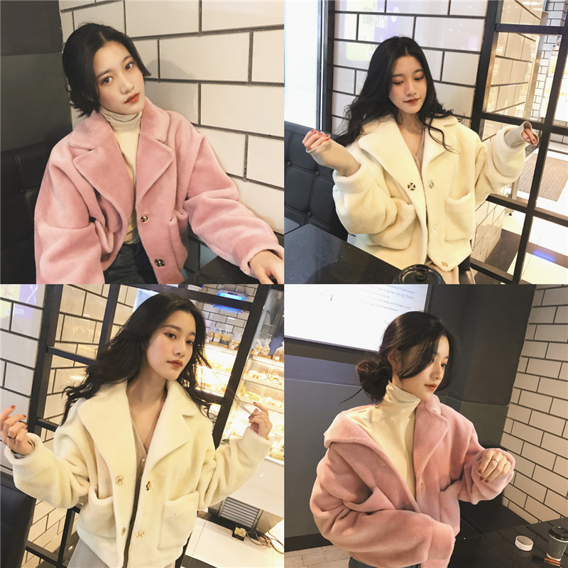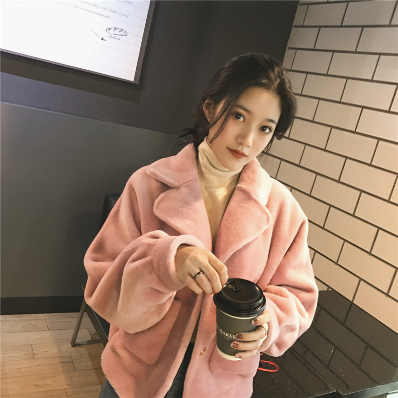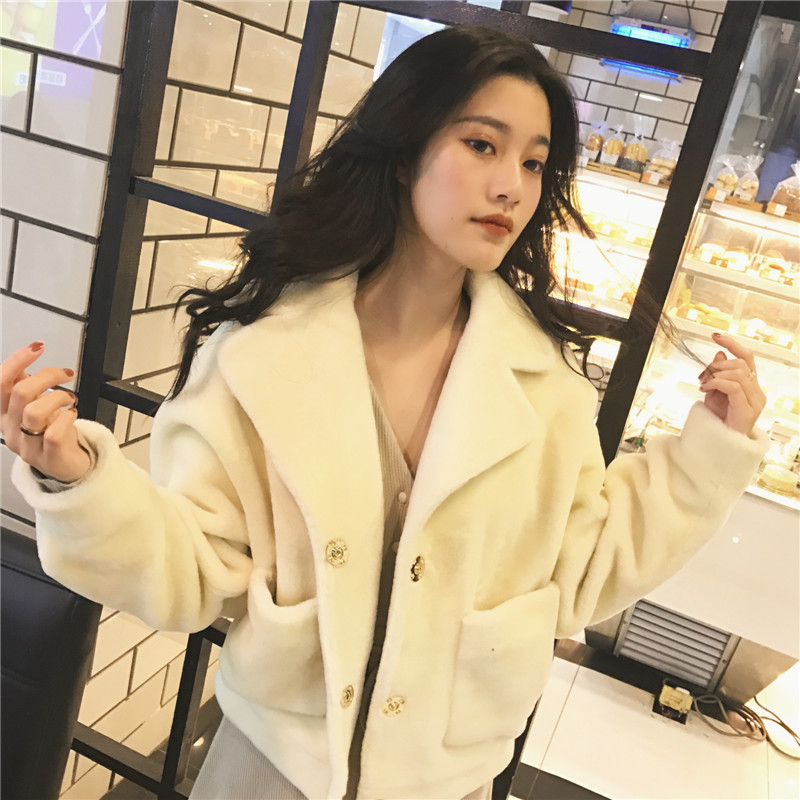2018秋冬韓版新款chic毛毛加厚保暖小香風純色單排扣毛呢短外套女