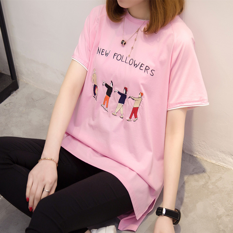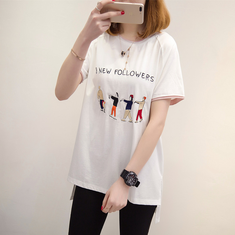 短袖t恤女春夏寬松韓版中長款白色打底體恤衫卡通女裝新款潮