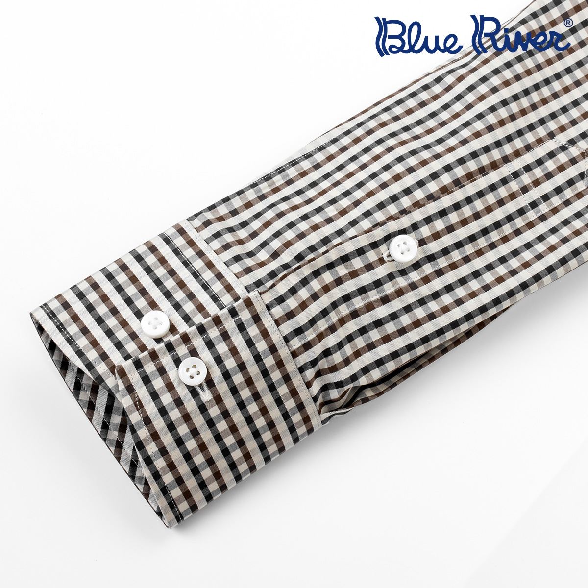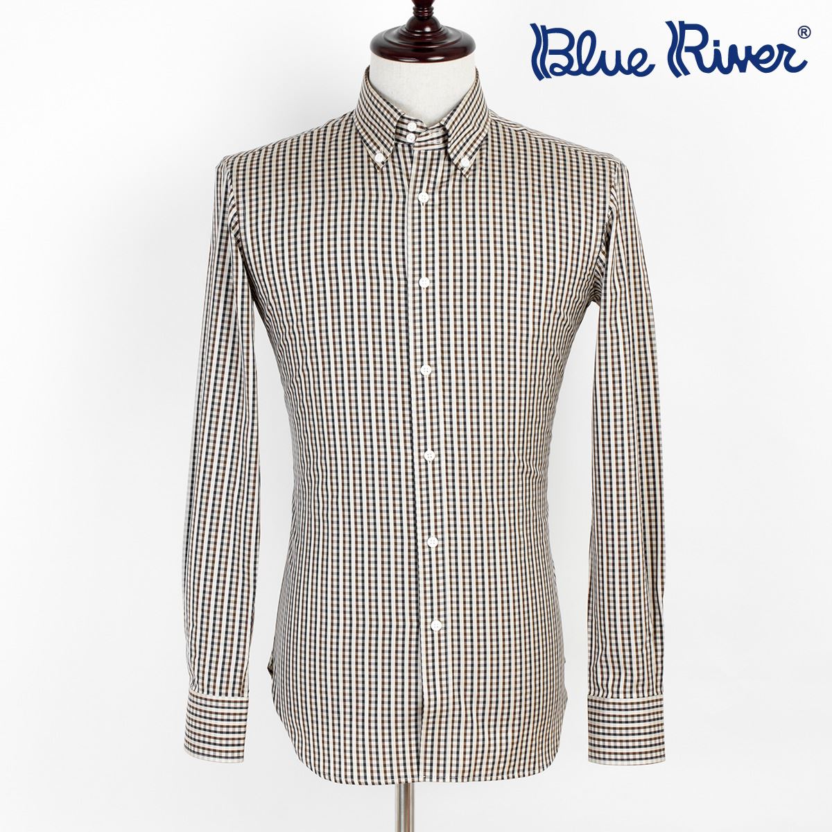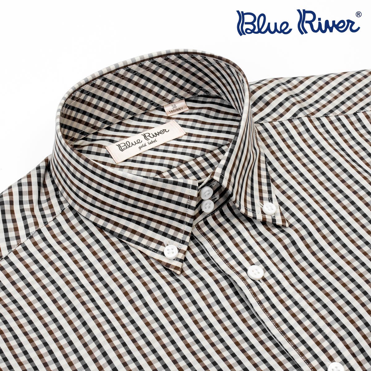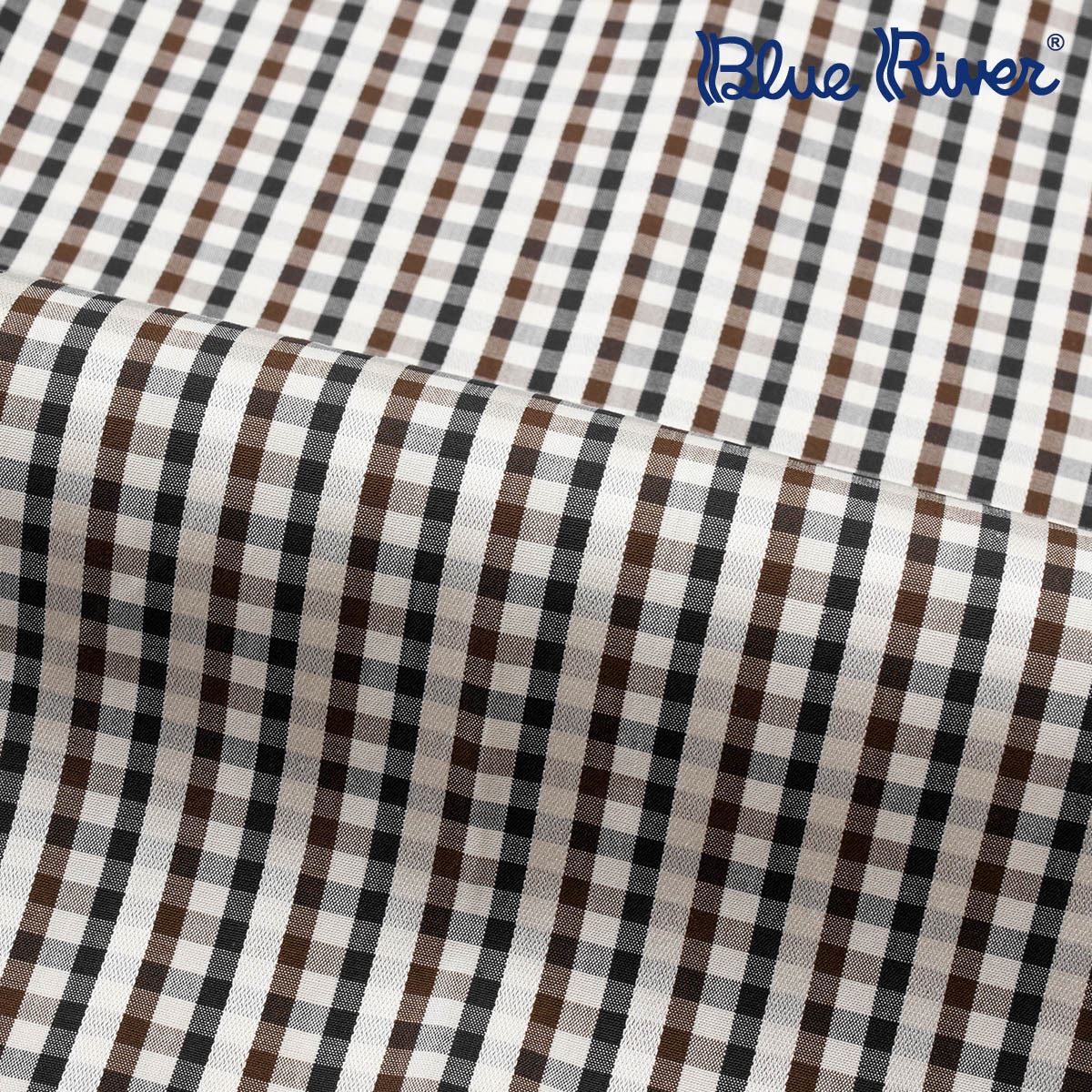 / 藍河新品 商務休閑格子襯衣長袖釘扣尖領男士長袖高支棉襯衫