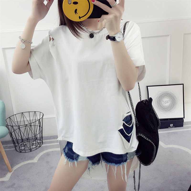 破洞短袖t恤女春裝新款潮春季韓版百搭學生寬松半截袖衣服夏