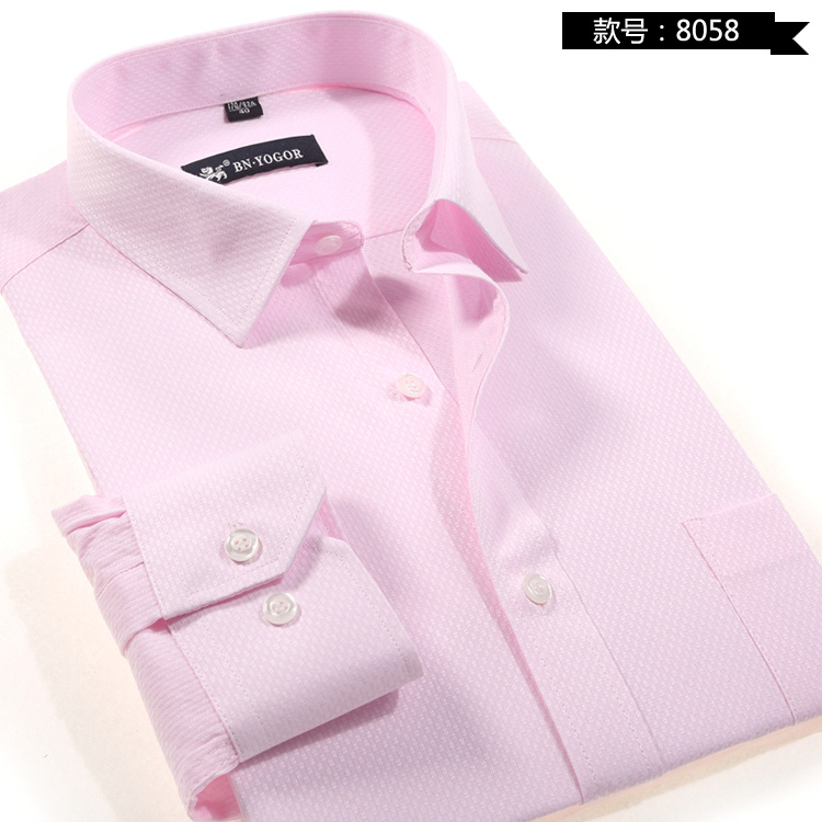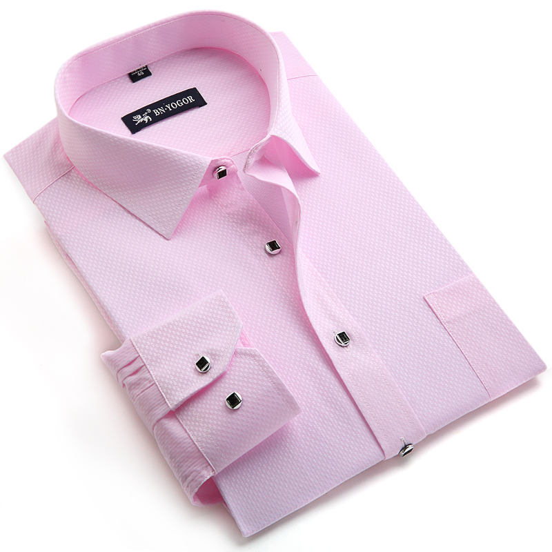 / 包郵特價男襯衫粉色暗紋商務休閑男士長袖襯衫新郎結婚免燙男襯衣