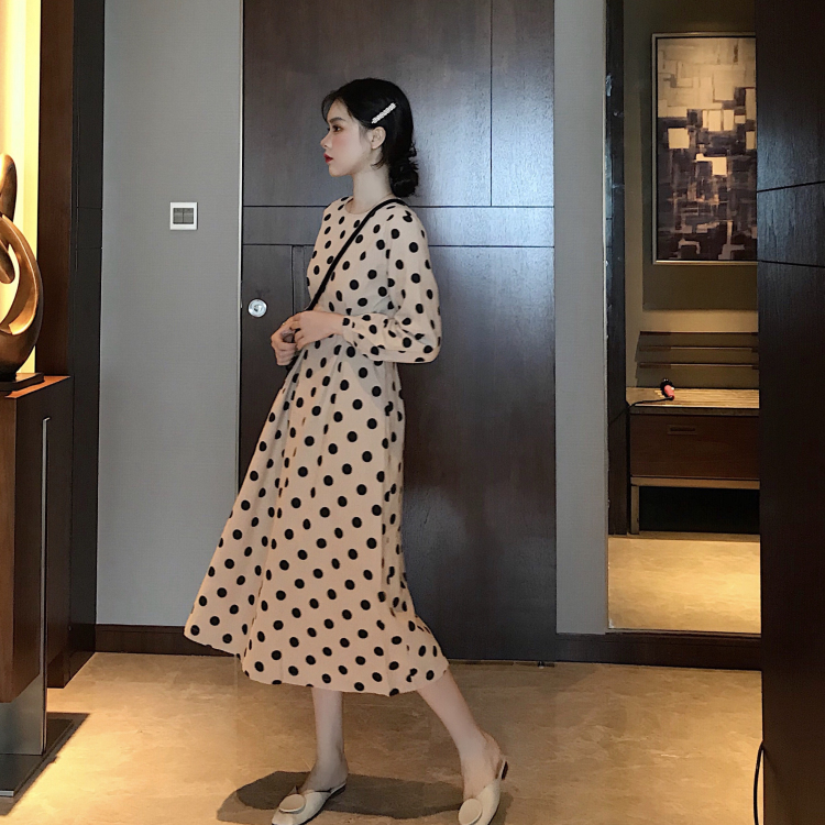 復古波點連衣裙2018新款女長袖秋中長款寬松韓版收腰a型顯瘦裙子