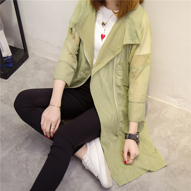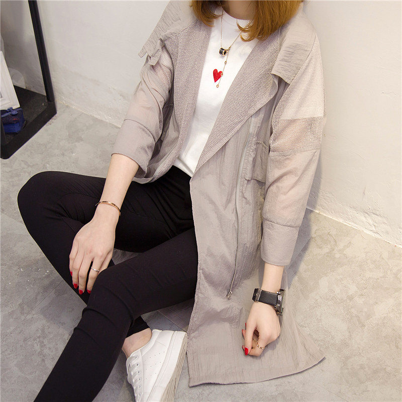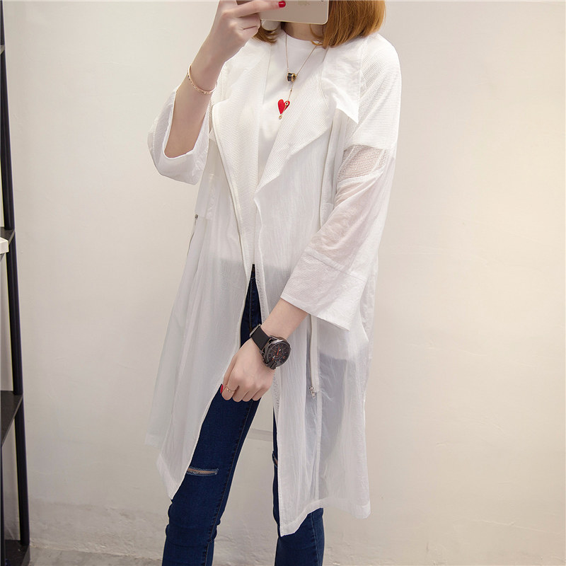 夏裝新款女長款透視防曬衣寬松白色風衣女春季韓版外套百搭潮