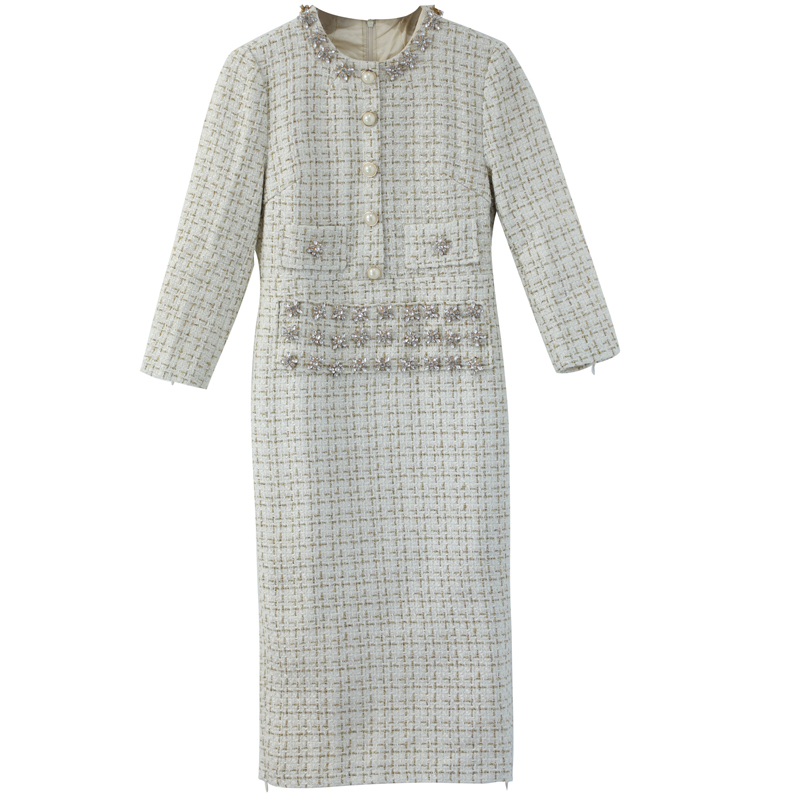 / 早秋裝女2018新款名媛氣質女神范粗花呢高腰打底女人味收腰連衣裙