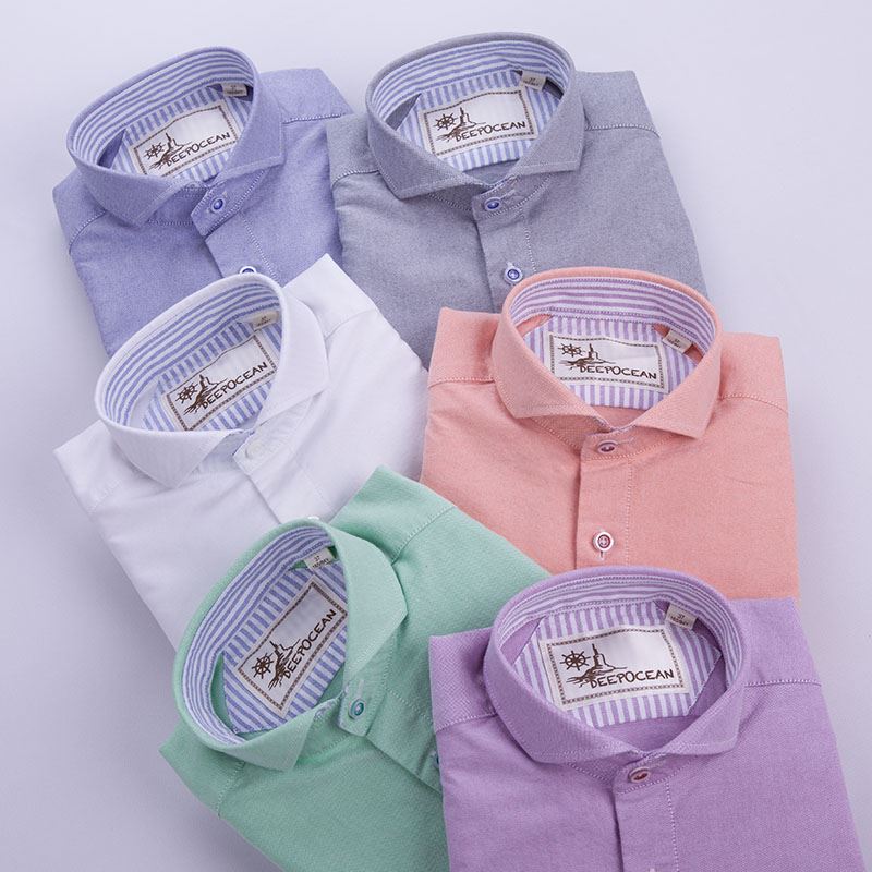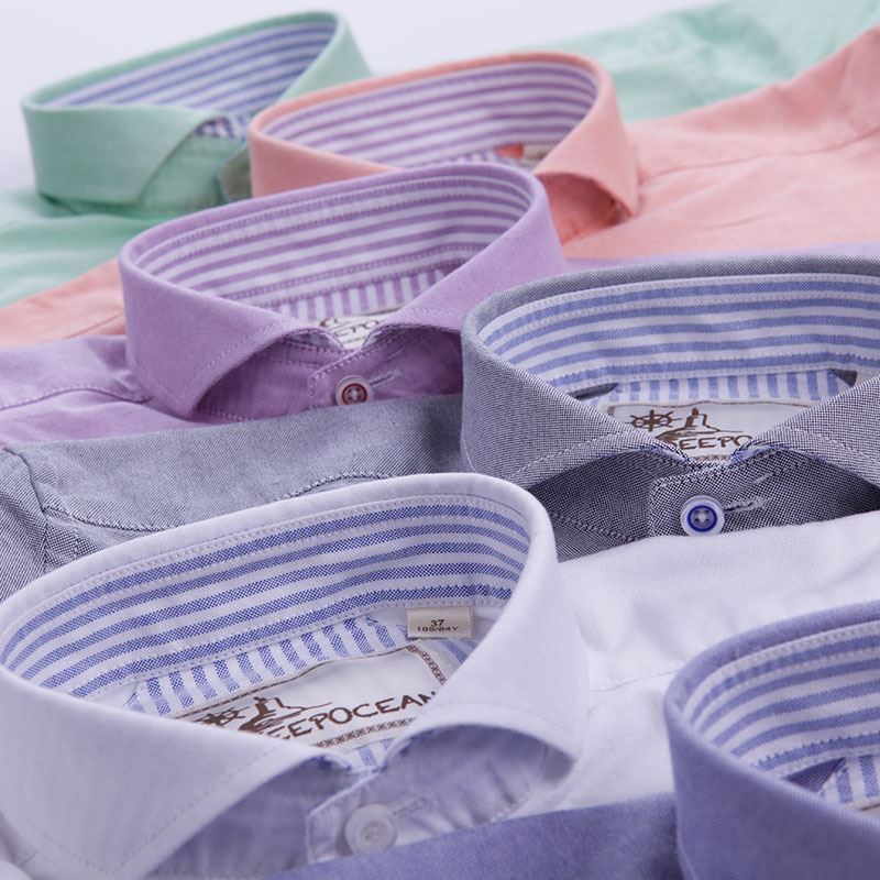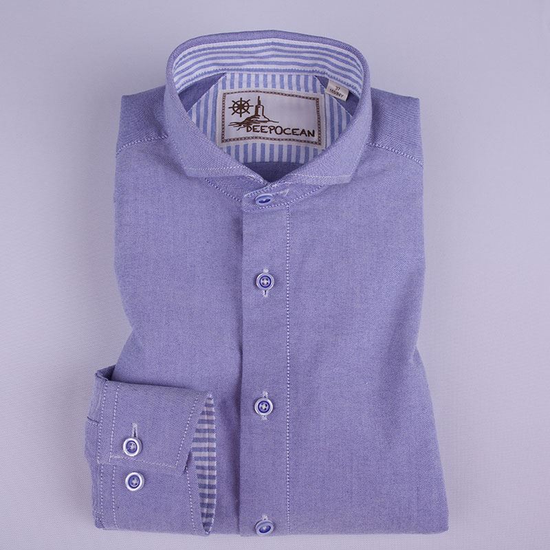 / 秋男裝襯衫精紡牛津紡純棉透氣修身純色男士長袖藍色溫莎領襯衣
