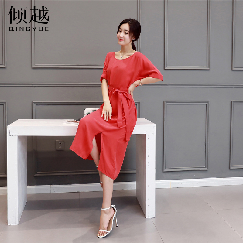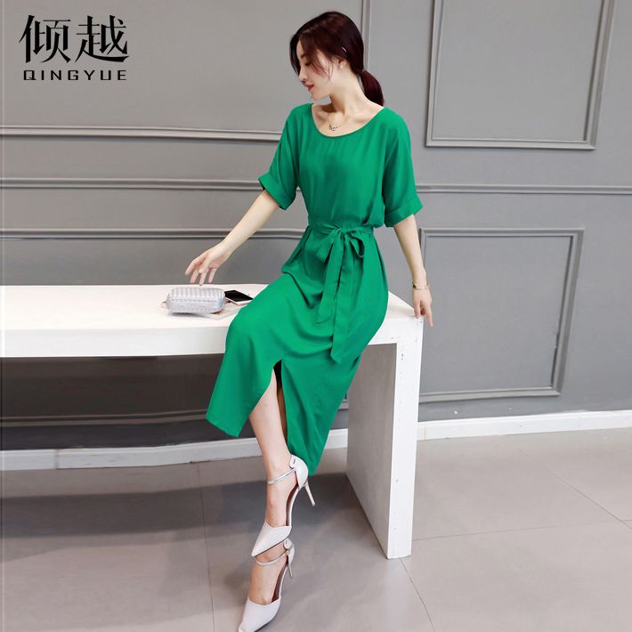 傾越連衣裙女夏季中長款短袖韓版顯瘦淑女2017春夏裝新款名媛裙子