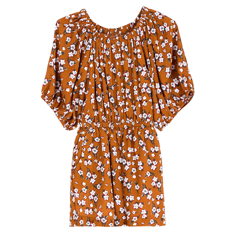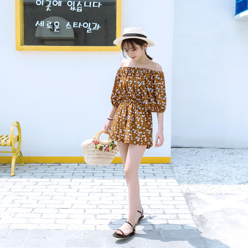 / 夏裝新款韓版女裝一字領碎花學院風雪紡連體褲高腰短褲休閑褲