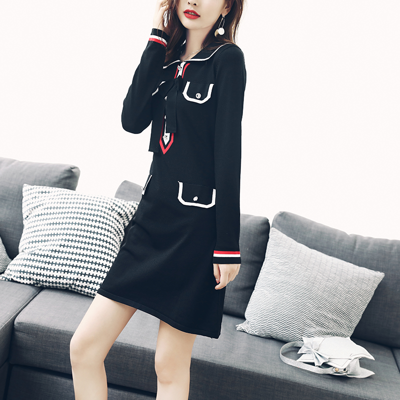 / 歐洲站小清新名媛學院風港味a字裙時尚針織連衣裙秋裝女2018新款