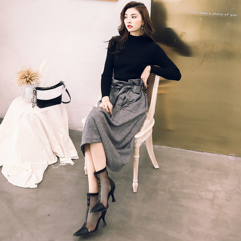 名媛毛衣兩件套女針織衫上衣2018秋季新款韓版高腰半身裙時尚套裝